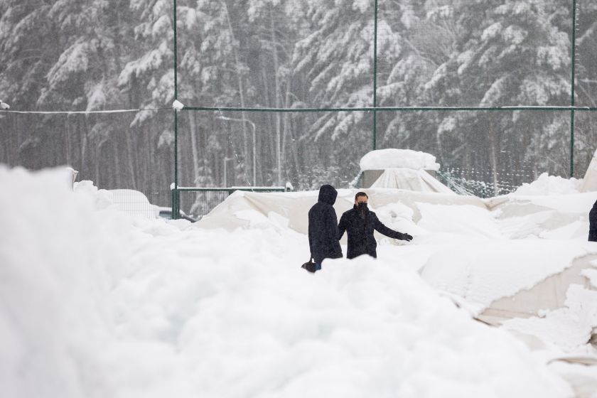 Neatlaikęs sniego sankaupos Pilaitėje subliuško pripučiamas futbolo maniežas