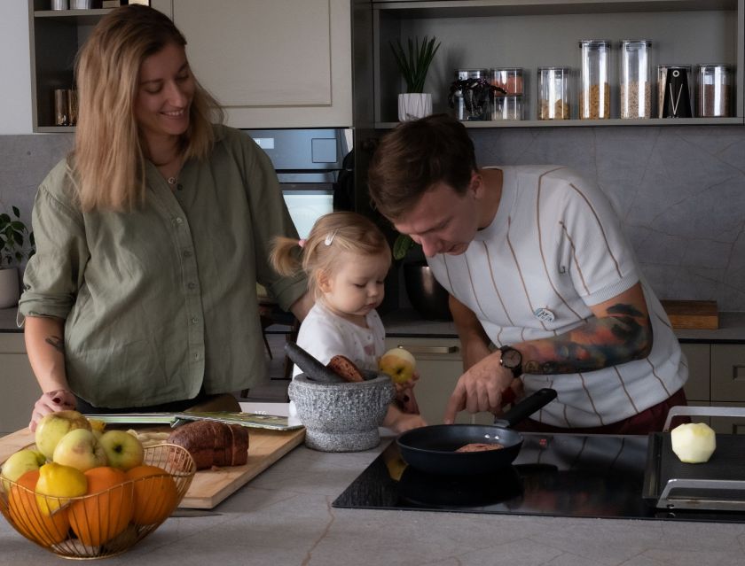„Sakyčiau, visaip įmanoma ir kiekviena šeima atranda sau priimtiną būdą. Mums maisto gamyba yra malonumas, tam tikras ritualas. Mėgaujamės buvimu virtuvėje ir maisto gamybos procesu, tad kaskart stengiamės pasigaminti šiai akimirkai, o ne ateičiai. Ir kitiems palinkėčiau įsirengti tokią virtuvę, į kurią norėtųsi grįžti, kurioje skanu vien būti“, – linki žymus virtuvės šefas.