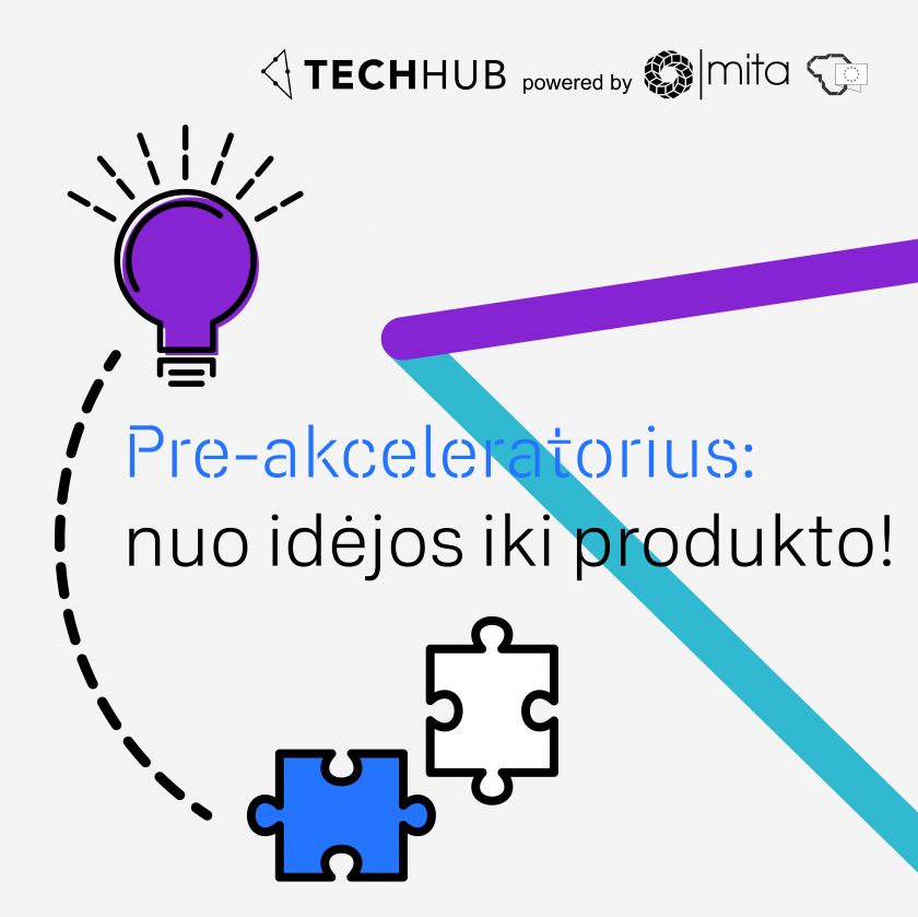 Mokslo, inovacijų ir technologijų agentūra (MITA) kviečia startuolių komandas registruotis į jau antrąjį projekto „TechHub pre-akceleratoriaus ciklą. Programos metu 25 startuoliai dalyvaus tris mėnesius trunkančiuose mokymuose, kuriuose su inovacijų ekspertų ir asmeninių mentorių pagalba turės galimybę vystyti savo idėjas, gaus reikalingų žinių tolesnei verslo plėtrai, susipažins su investuotojais ir verslo angelais, turės galimybę pasipildyti komandos nariais.