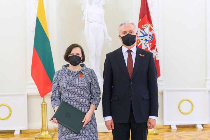 Prezidentas Gitanas Nausėda Vasario 16 d. Prezidentūroje Lietuvos vyriausiojo archyvaro tarnybos Dokumentų ir archyvų valdymo ir naudojimo skyriaus vedėjai dr. Daivai Lukšaitei įteikė ordino „Už nuopelnus Lietuvai“ medalį.