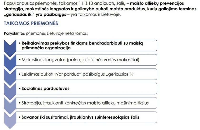 Tokia praktika, paremta Prancūzijos, Čekijos, Slovakijos patirtimi, leidžia ne tik sumažinti išmetamo maisto kiekius, bet ir prisideda prie kokybiškesnės sunkiau besiverčiančių gyventojų mitybos. Lietuvoje per metus sunaikinama iki 400 tūkst. tonų vartoti tinkamo maisto.