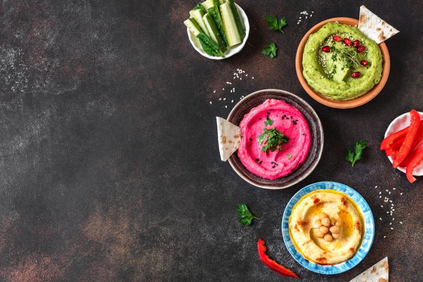 Trispalvės humuso užtepėlės