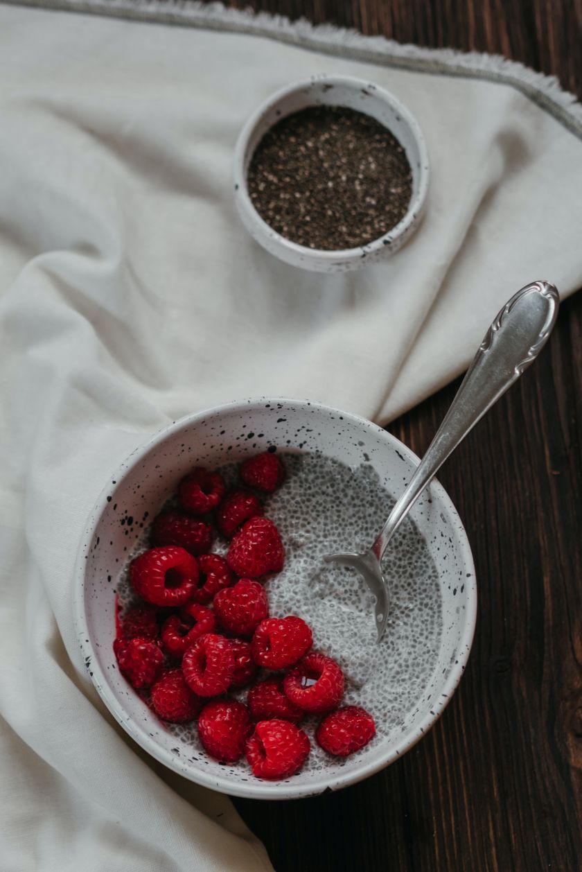Šokoladinis chia pudingas su avietėmis